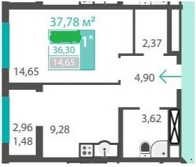 Квартира, 1 комн., пл. 39 кв.м., 14/16 эт., код: 108067